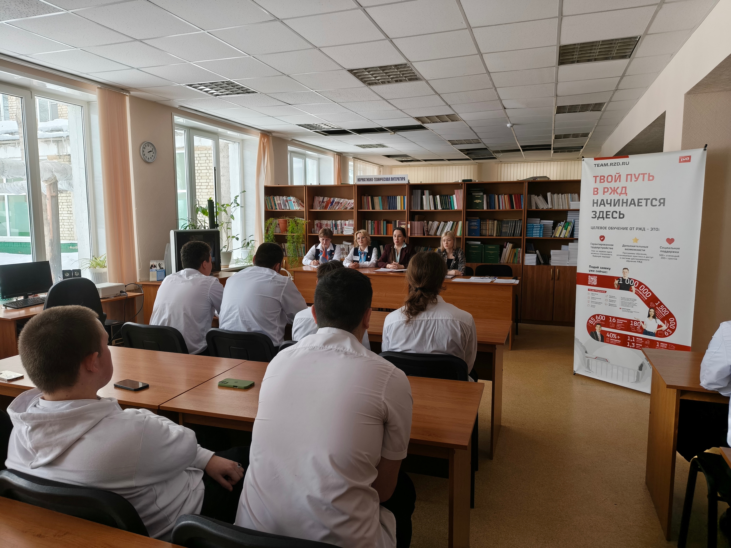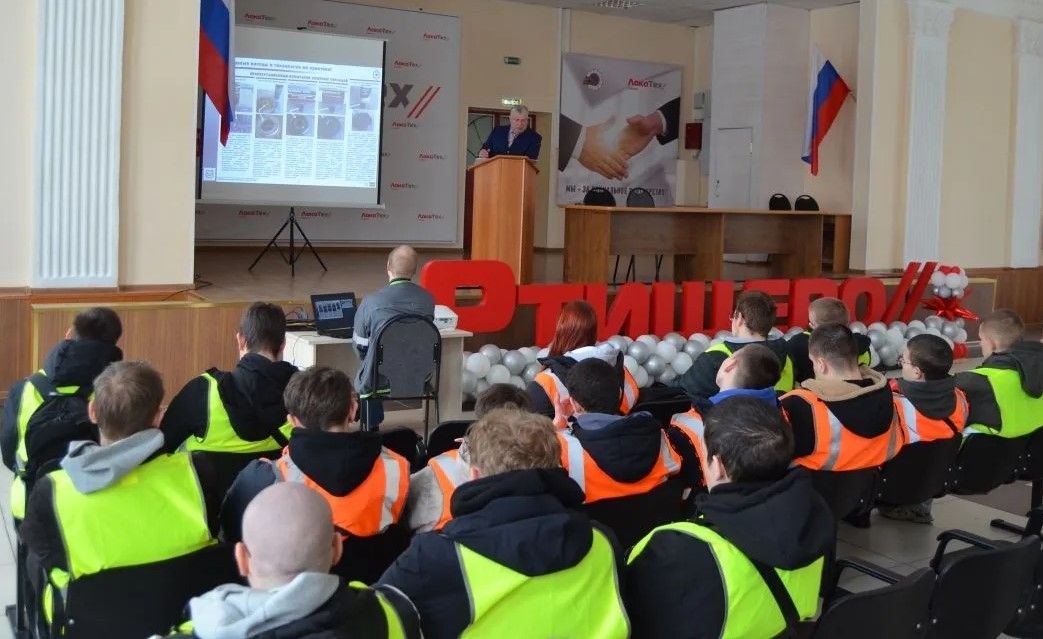 25 февраля 2026 года студенты 2 курса РТЖТ – филиала ПривГУПС посетили Производственный участок Ртищево Юго-Восточной дирекции по ремонту тягового подвижного состава. В ходе встречи руководитель предприятия Кашкин Д.В. рассказал обучающимся о современных технологиях организации труда. Преподаватель РТЖТ – филиала ПривГУПС Климаков А.П. вручил коллективу ТРПУ Ртищево Благодарственное письмо от директора техникума за тесное и плодотворное сотрудничество в подготовке молодых специалистов локомотивного хозяйства.