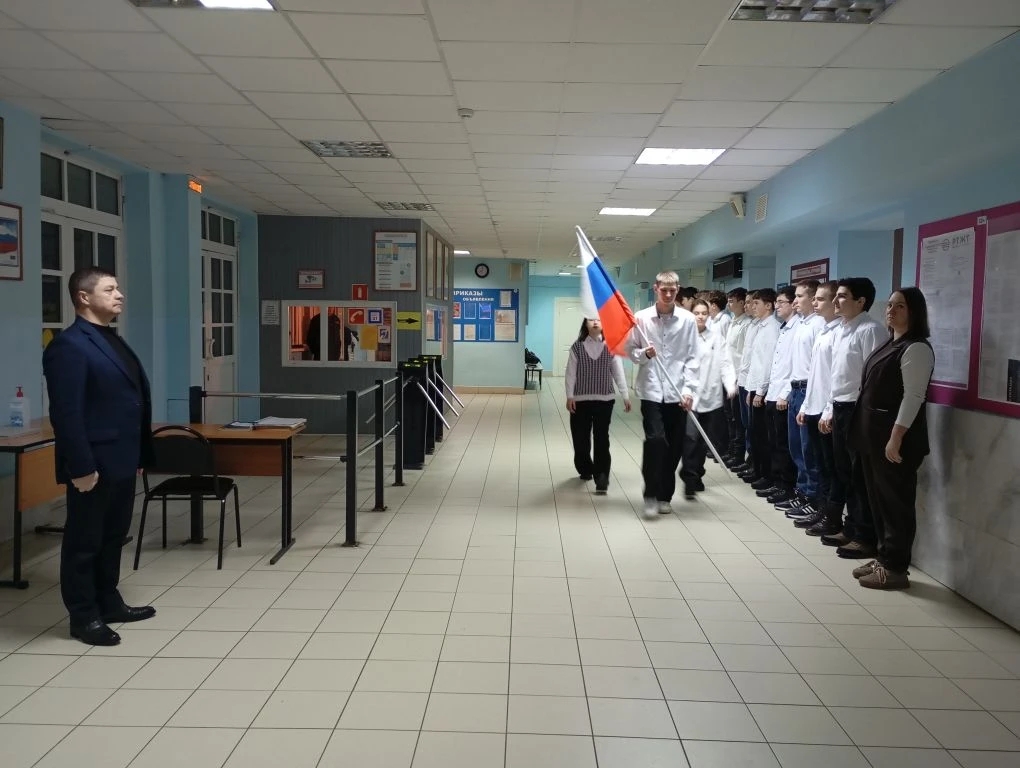 16.03.26 состоялась традиционная торжественная линейка с выносом Государственного флага Российской Федерации и исполнением гимна страны. Мероприятие закрепило еженедельную практику патриотического воспитания студентов и положило начало новой учебной неделе.