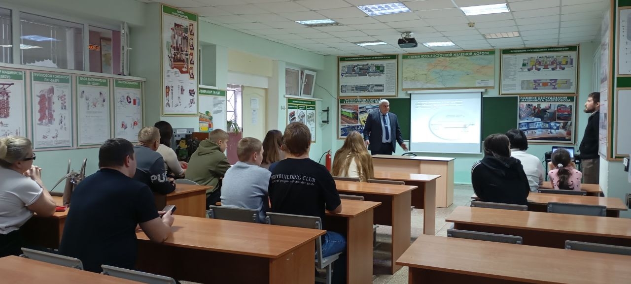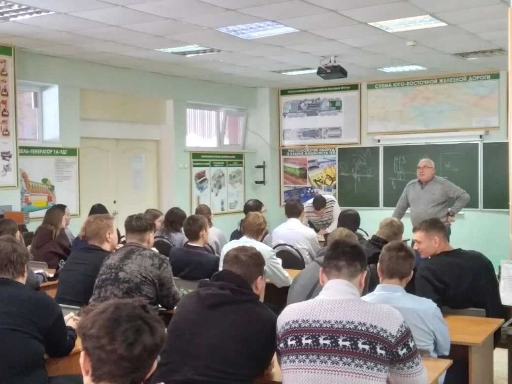 21.01.2026 в РТЖТ- филиал ПривГУПС прошла встреча студентов 3,4 курсов с заместителем начальника ПОУ " Ртищевская автошкола ДОСААФ России" Ялуниным М. А. по возможностям получения дополнительного образования военно-учётным профессиям.