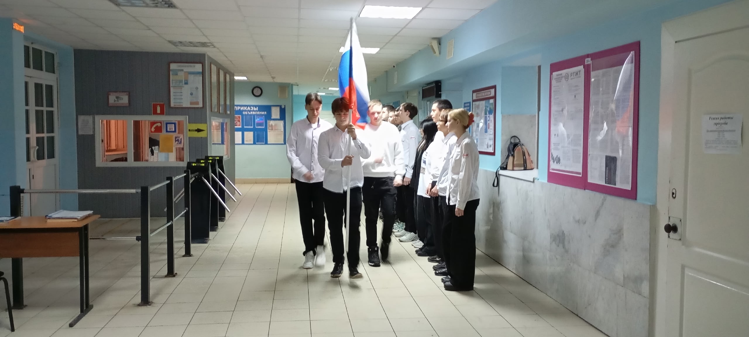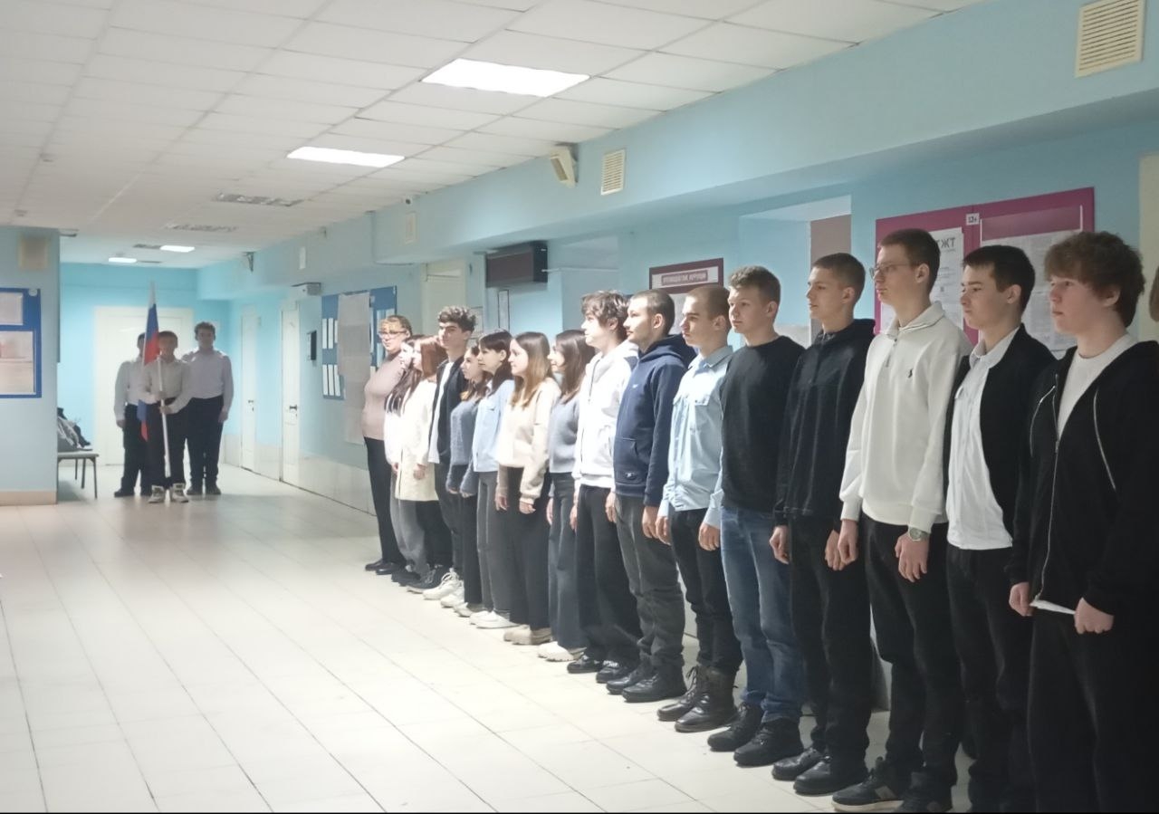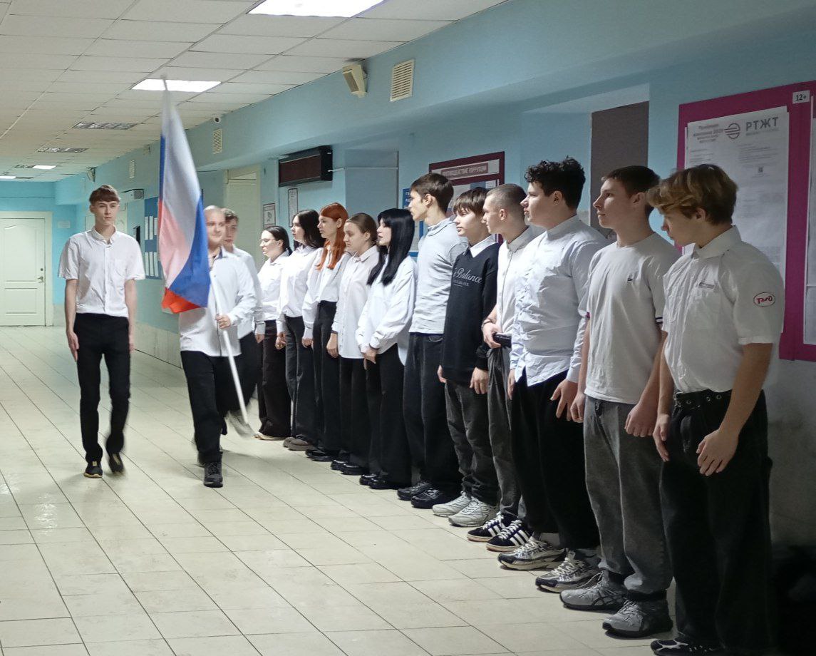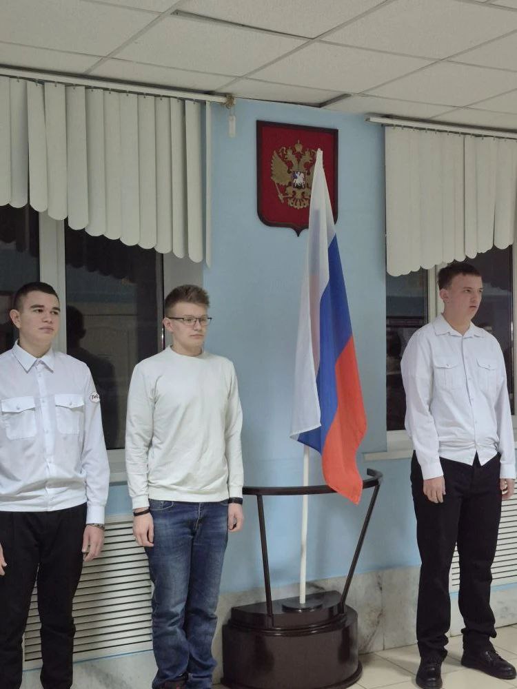 Сегодня, 26.01.2026 г., в стенах нашего техникума состоялась важная традиционная патриотическая акция — торжественный вынос Государственного флага Российской Федерации.