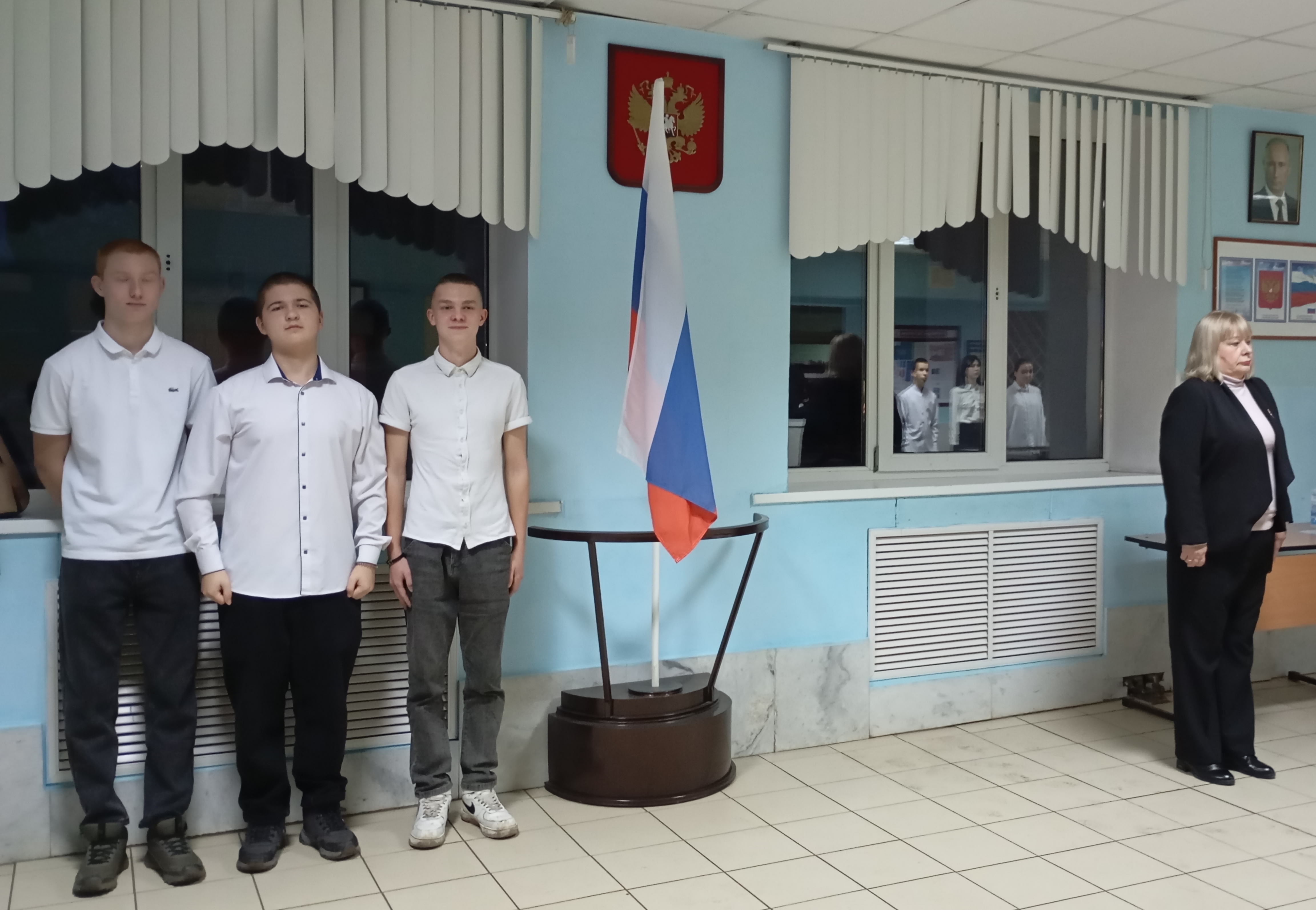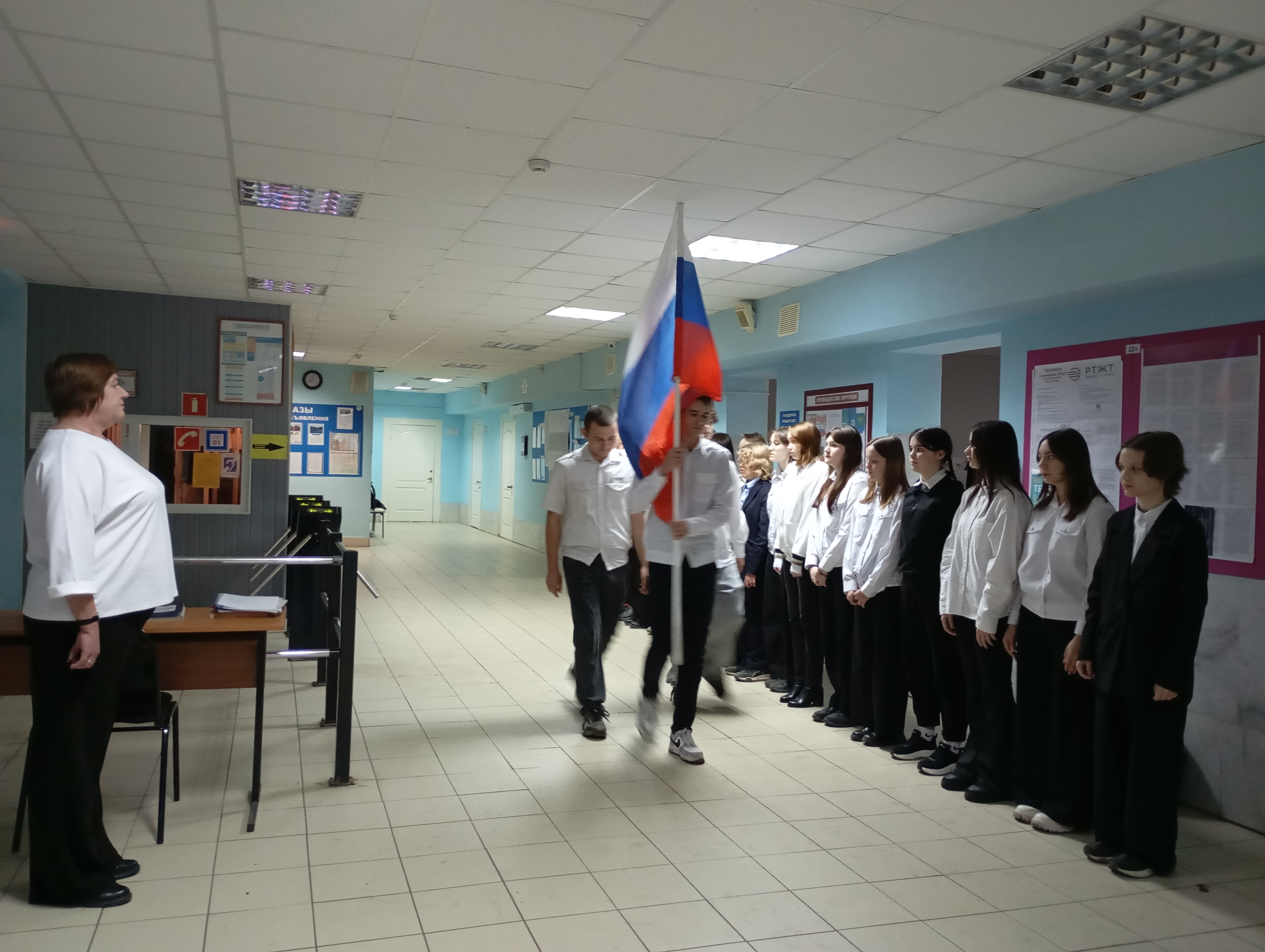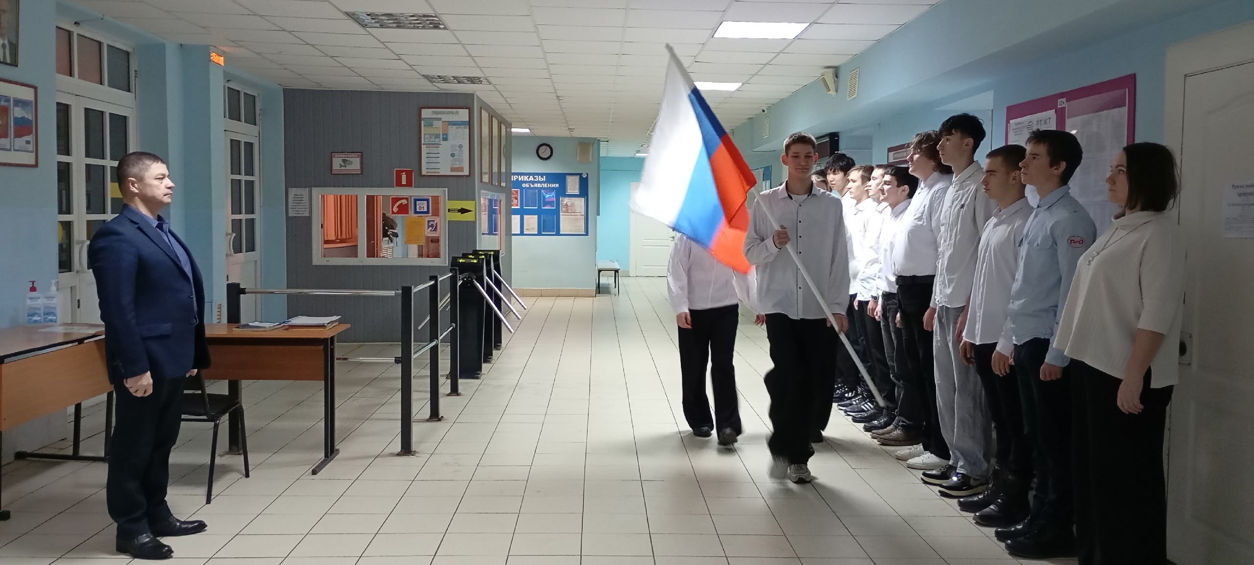 Сегодня, 26.01.2026 г., в стенах нашего техникума состоялась важная традиционная патриотическая акция — торжественный вынос Государственного флага Российской Федерации.