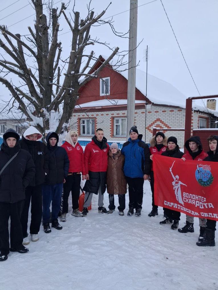 В рамках благотворительной акции студенты волонтёры оказали помощь семье участника специальной военной операции в расчистке снега у частного дома.