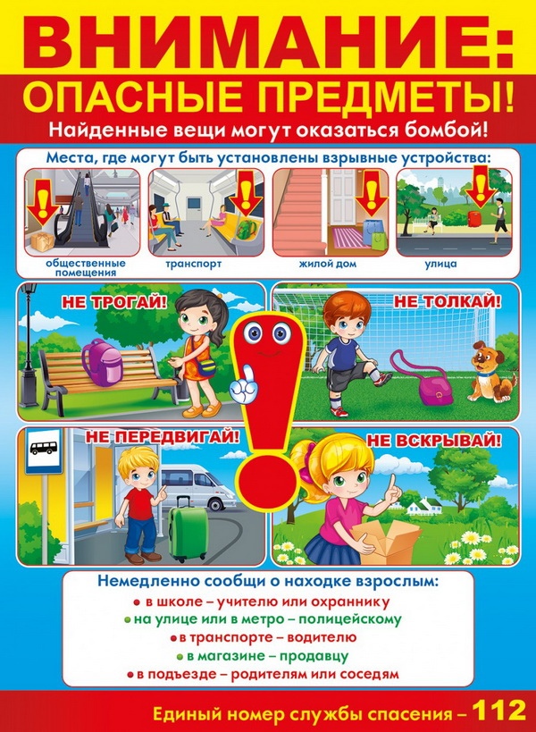 Никогда не поднимай ничего с земли — ни игрушки, ни деньги, ни свёртки, ни банки, ни другие предметы. Даже если вещь красивая или интересная — она может быть опасной!