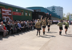 Согласно традициям праздничное мероприятие проходило на учебно-производственном полигоне СамГУПС. Ретро-теплушка, украшенная транспарантами и цветами, воспроизводила атмосферу весны сорок пятого.