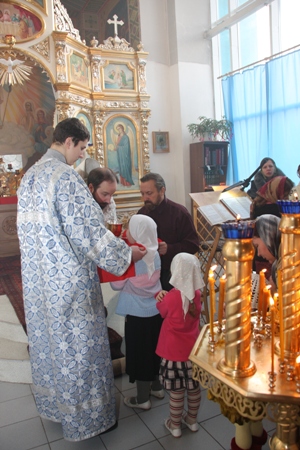 В этот день вспоминается событие, произошедшее почти 2000 лет назад. В возрасте 30 лет Иисус принял Крещение в водах реки Иордан у живпшго в пустыне праведника и подвижника Иоанна, прозванного Крестителем. Крещением назывался существовавший у иудеев (и у многих других народов) обряд погружения в воду, знаменовавший очищение души от греха, подобно очищению тела водой. Иоанн призывал жителей Израиля покаяться в грехах. Под влиянием его речей многие приходили каяться, и тогда Иоанн крестил их в водах реки Иордан. Христос был безгрешен. Однако и Он принял Крещение, чтобы собственным примером показать: путь к Богу начинается с очистительного покаяния. Тем самым Он освятил Крещение как таинство. Отныне это не только знак покаяния и очищения, но и действительное избавление людей от последствий грехопадения. Узнав в Иисусе Сына Божия, Иоанн пытался остановить Его: «...мне надобно креститься от Тебя, и Ты ли приходишь ко мне?». На это последовал твёрдый ответ Спасителя: «...оставь теперь, ибо так надлежит нам исполнить всякую правду...» (Мф. 3.14-15). Затем Христос вошел в реку, а Иоанн, возложив руки на Его главу, крестил Сына Божия. Именно так изображает это событие праздничная икона Крещения Господня. В Священном Писании говорится, что, когда Иисус выходил из воды. Святой Дух зримо сошёл на Него, подобно трепещущему в воздухе голубю, а голос с небес донёс до тех, кто был способен Его услышать: «Сей есть Сын Мой возлюбленный, в Котором Мое благоволение» (Мф. 3.17). Во время Крещения Иисуса Христа произошло явление всех Лиц Святой Троицы: Бог Сын предстоял в человеческом облике. Бог Дух Святой снисшел на Него в виде голубя, а с Небес раздался голос Бога Отца. Поэтому праздник имеет еще одно название - Святое Богоявление. По уставу Православной Церкви служба празднования Крещения Господня проходит в течение 2-ух дней 18 и 19 января. 18 января - Крещенский сочельник. В старину, на службе Крещенского сочельника, начиная с царя Алексея Михайловича Романова, по примеру ещё византийским императоров всегда присутствовали цари, и потому, первая часть службы называется Царскими часами. Крещенским сочельником заканчиваются святки, которые праздновались с праздника Рождества Христова. 19 января сам праздник Крещения Господня - Богоявления. В Храме СамГУПС в честь иконы Божией матери «Утоли моя печали» 18 января служба Крещенского сочельника началась Царскими часами в 8 часов утра, после проходила