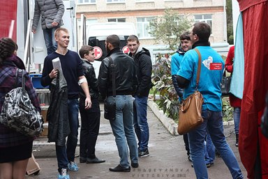 С восьми утра возле корпуса №5 работала мобильная станция ГБУЗ "Самарская областная клиническая станция переливания крови".
