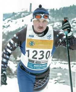 австрийском, который проходил 26 января. (Городок Обертиллах - это местечко австрийских Альп знаменито тем, что здесь тренируется пятикратный олимпийский чемпион по биатлону норвежец Уле-Айнар Бьордален). 50-километровая трасса пролегала на высоте 1.500 метров над уровнем моря и без специальной подготовки здесь сложно дышать. Александр выступил удачно, показал результат: 50 км за 3 часа 10 минут! В родной вуз вернулся с медалью – за успешное прохождение марафона, когда твой результат «вписывается» во время победителя, плюс 25 процентов времени к его результату.