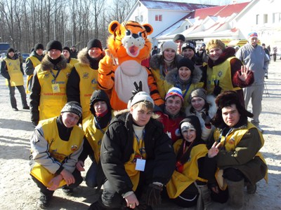 День начался просто отлично. Яркое солнце, легкий морозец и небольшой ветер, который совсем не мешал. Команда бравых волонтеров в составе 19 человек отправляется на помощь в организации праздника. Нам предстоит ответственная задача: постоянно координировать движение лыжников на старте и финише. Только представьте: около 7 тысяч участников провожали и встречали наши ребята. Не успевала стартовать очередная группа, как выстраивался следующий забег. Время летело незаметно. Пока лыжники соревновались, мы не скучали. Танцевали, фотографировались, раздавали значки с логотипом праздника, угощались вкусными пирожками и блинами, ведь в этот день праздновали Масленницу! После окончания гонки участники не спешили расходиться домой. Отложив снаряжение в сторонку, они пускались в пляс, провожая зиму.