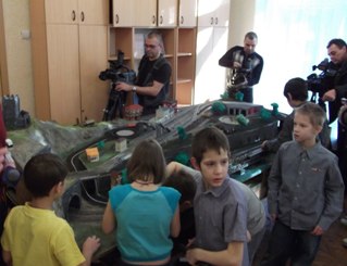 машинками и другими предметами, и это внесло свои коррективы в работу макета. Но впереди предстоял его торжественный запуск перед воспитанниками Детского дома и всеми участниками мероприятия. И пока ЦСП-шники готовили костюмированное представление, СКБ-шники в поте лица старались придать макету надлежащий вид и запустить его в действие.