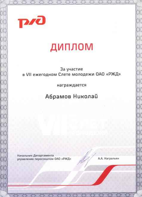 С 9 по 15 сентября в Москве проходил VII-й Слет молодежи ОАО "РЖД". Участниками Слета стали более 500 человек: финалисты конкурсов «Новое звено 2013», молодые преподаватели учебных центров, руководители и работники филиалов, председатели молодежных общественных объединений дорог и дирекций, представители зарубежных железнодорожных администраций и производителей железнодорожной техники.