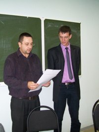 На торжественном собрании, посвященном зачислению в аспирантуру, которое состоялось 29 сентября 2010 года, напутственные слова и пожелания высказали директор института управления и экономики П.Б. Романова, декан электротехнического факультета В.Ф. Путько, председатель экспертного совета, профессор С.В. Копейкин, заведующий кафедрой, академик МАНЭБ (международная академия наук экологии, безопасности человека и природы) Б.А. Анфилофьев.