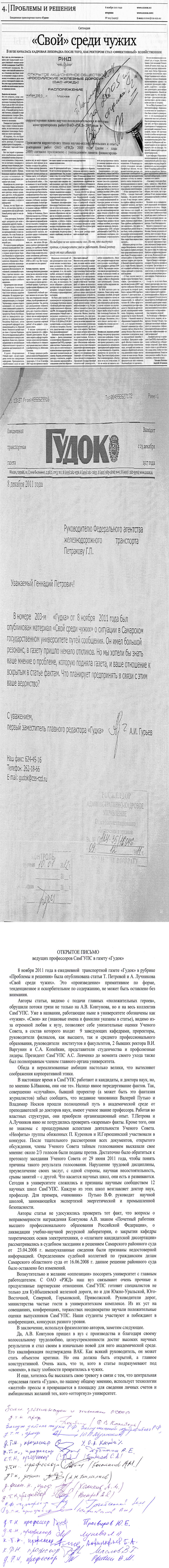 Открытое письмо ведущих профессоров СамГУПС в газету "Гудок"