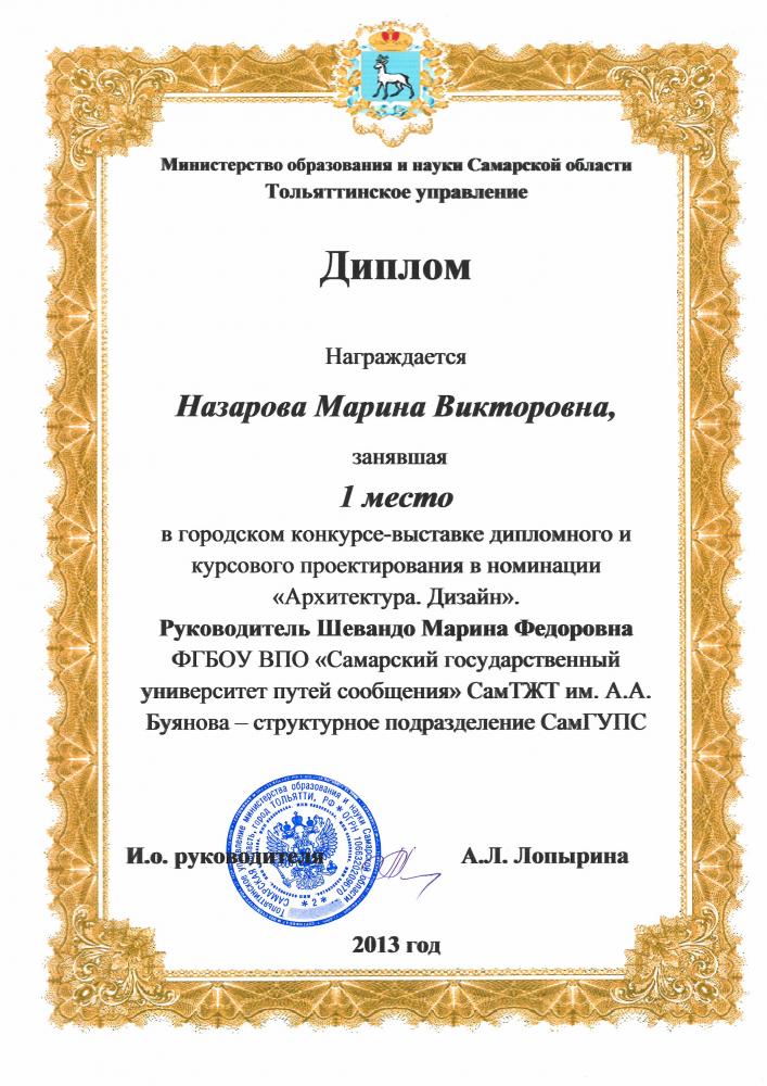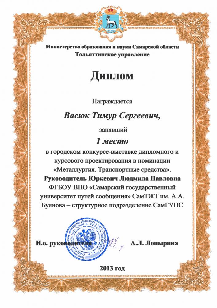 В апреле 2013 года Тольяттинское управление Министерства образования и науки Самарской области организовало конкурс дипломного и курсового проектирования. Дипломные проекты студентов СамТЖТ - структурного подразделения СамГУПС стали победителями по направлениям "Металлургия. Транспортные средства" и "Архитектура. Дизайн"