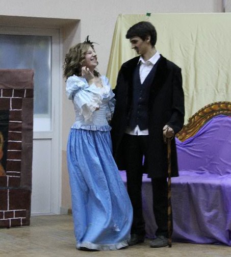 Анна Бородай (Дарья Семеновна): «Мне досталась «возрастная роль», а это всегда тяжело - молодой девушке играть пожилую даму. Притом, мы решили отказаться от грима и основывались только на актерском мастерстве и пластике. У меня не было страха перед выступлением, потому что текст я начала учить задолго до премьеры и к моменту выхода на сцену была уверена в себе. А еще у нас подобрался очень хороший коллектив, в котором все друг другу помогали. И каждый раз на репетиции я приходила в наш актовый зал с удовольствием".