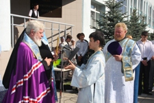 Окропляя всех святой водой, священнослужитель пожелал преподавателям – терпения, студентам - преуспеяния в науках.